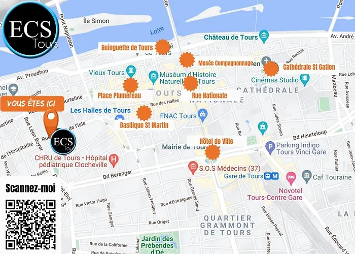 - ❓公寓附近有哪些地标?公寓附近有普吕姆罗广场以及Institut de Touraine。